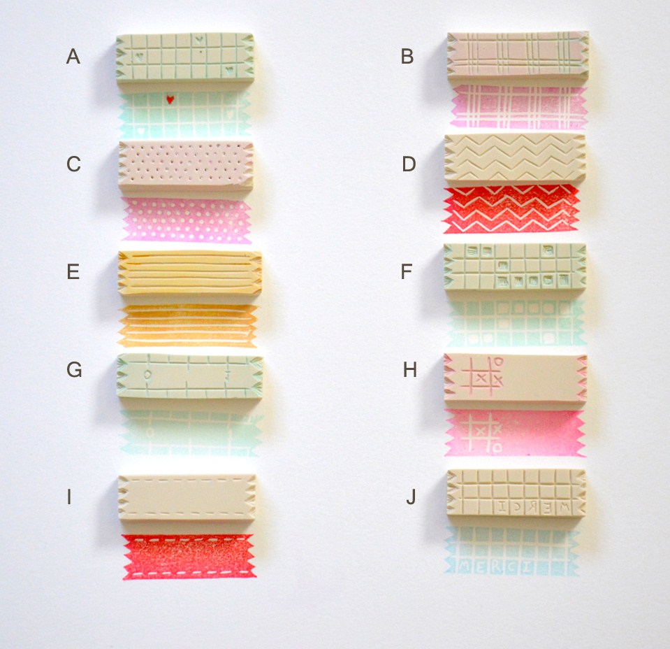 Crear-vos segells amb gomes d'esborrar que simulin washi tapes com per exemple aquests: